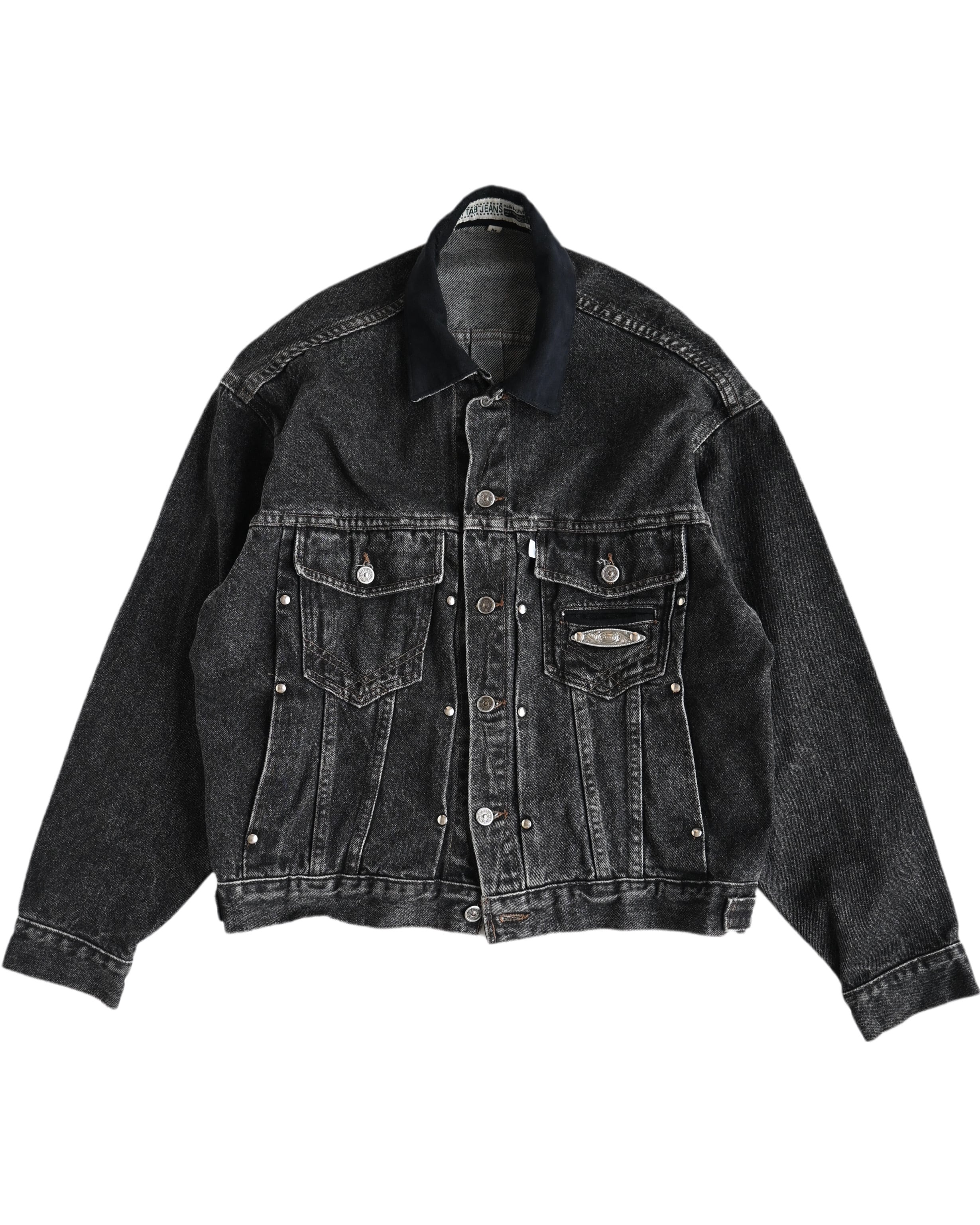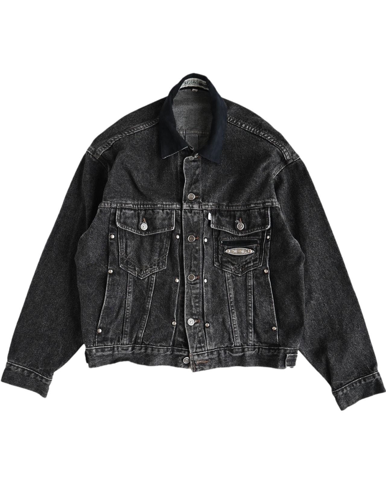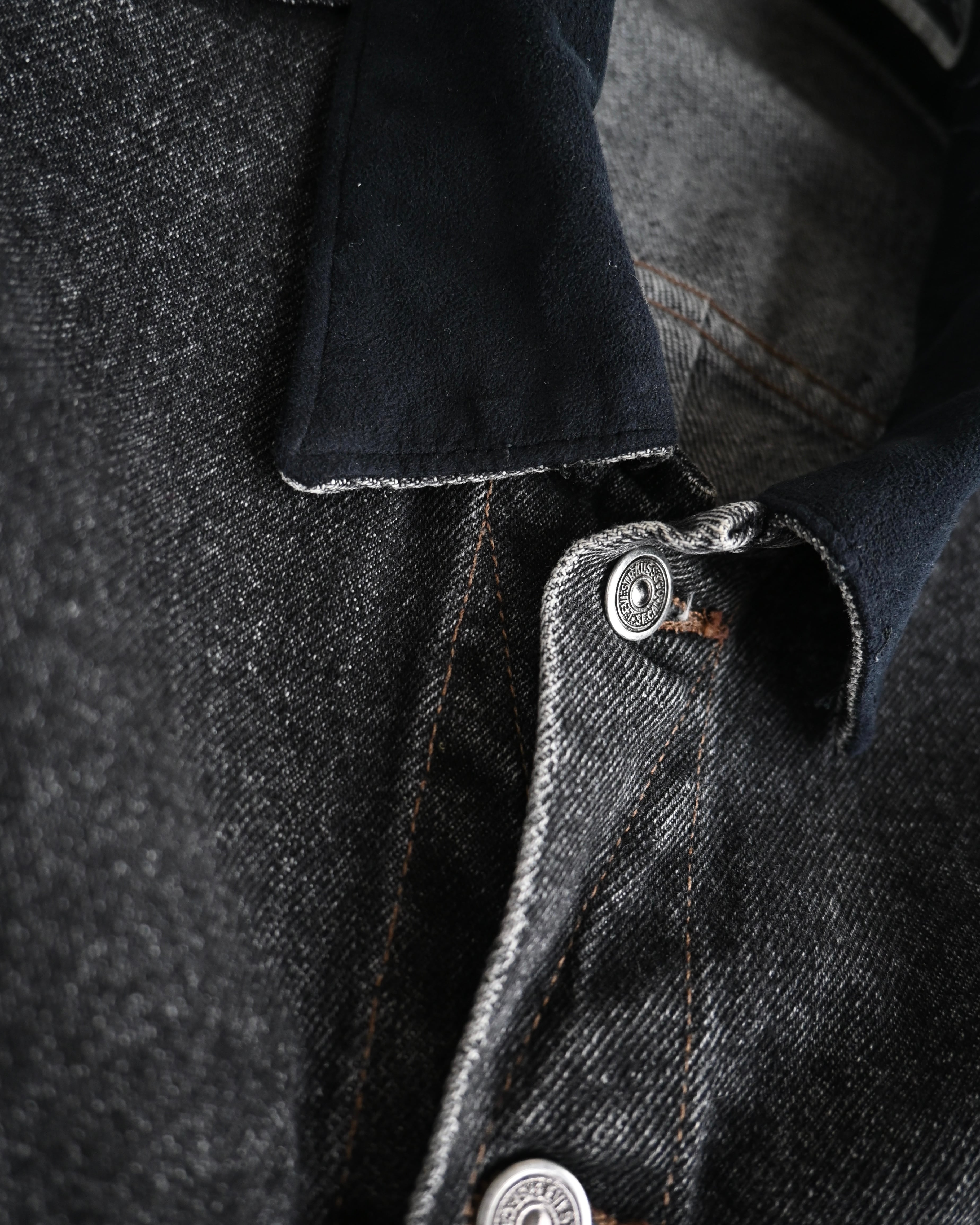 90s usa "SilverTab" yern dyed black denim trucker jacket