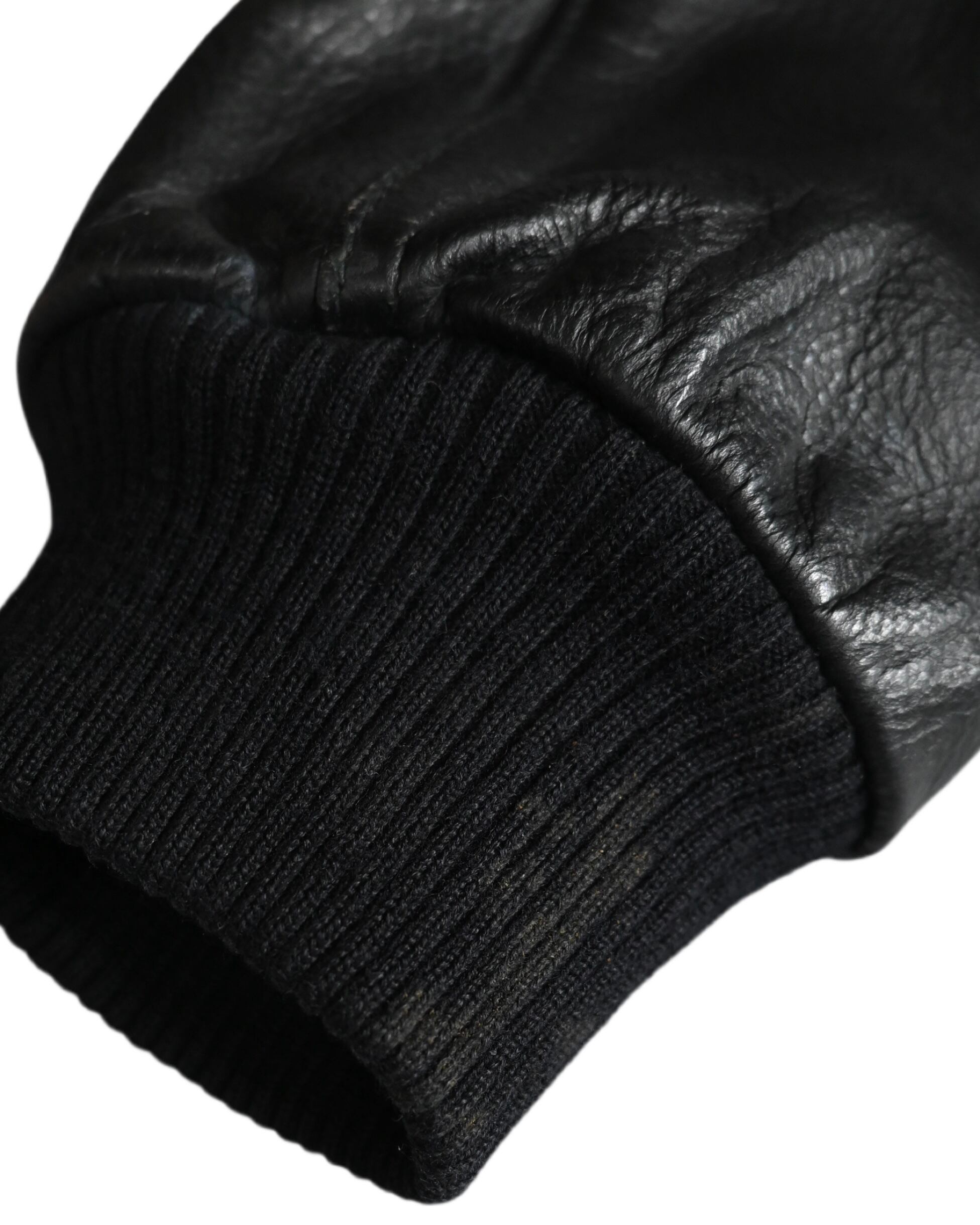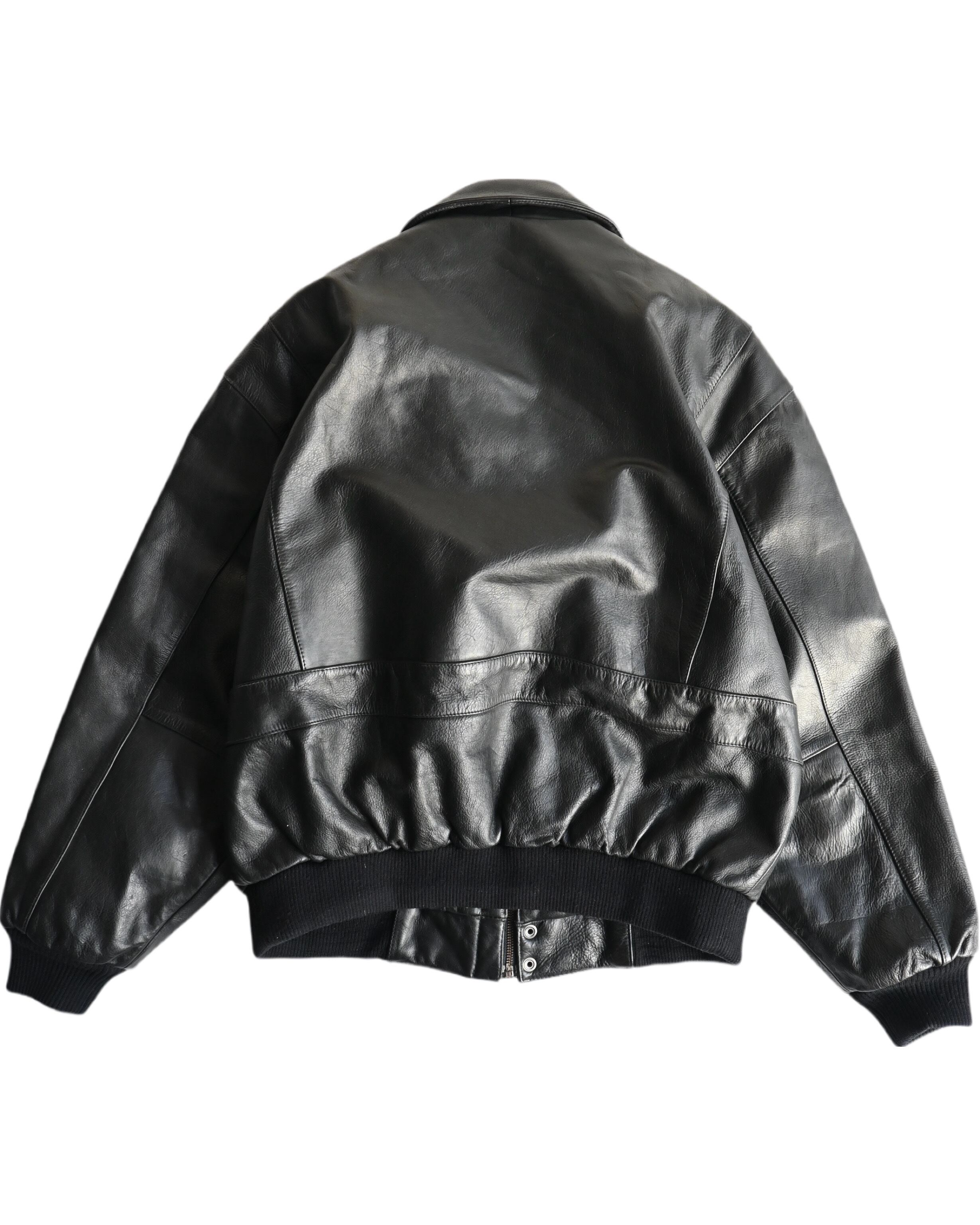 A-2タイプのレザージャケット。L〜XLくらいのサイズ感。右袖と裾に汚れあり。