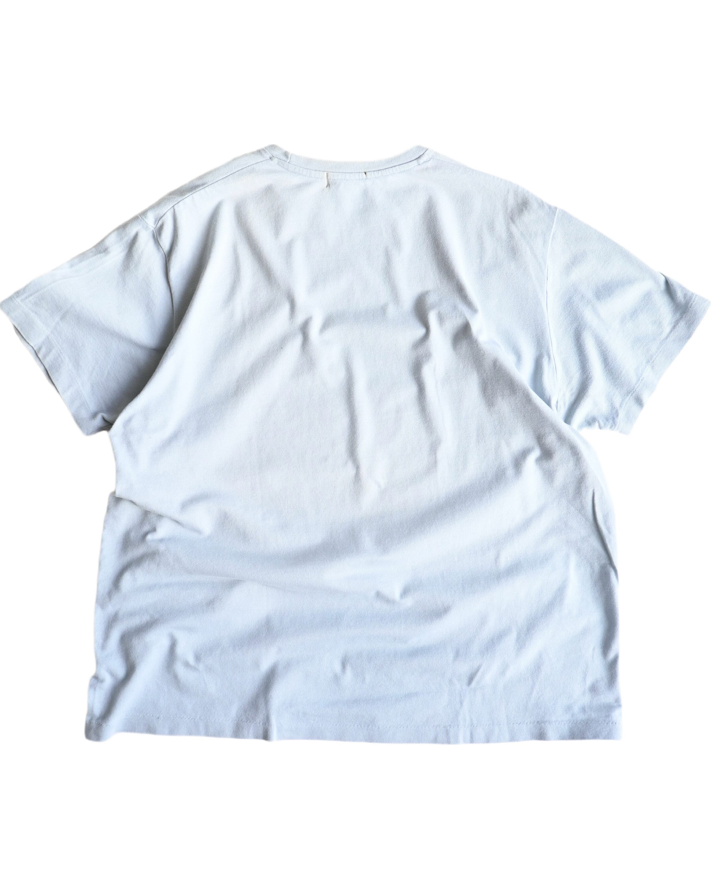 イタリア製のJ.CREW。基本大きい作りですが此方はサイズバランス問題無しです。カットソーではなく鹿の子生地のボックスカット。袖裾シングルステッチ。前見頃裾に白いペンキ跡あり、それ以外は目立った傷や汚れ無し。