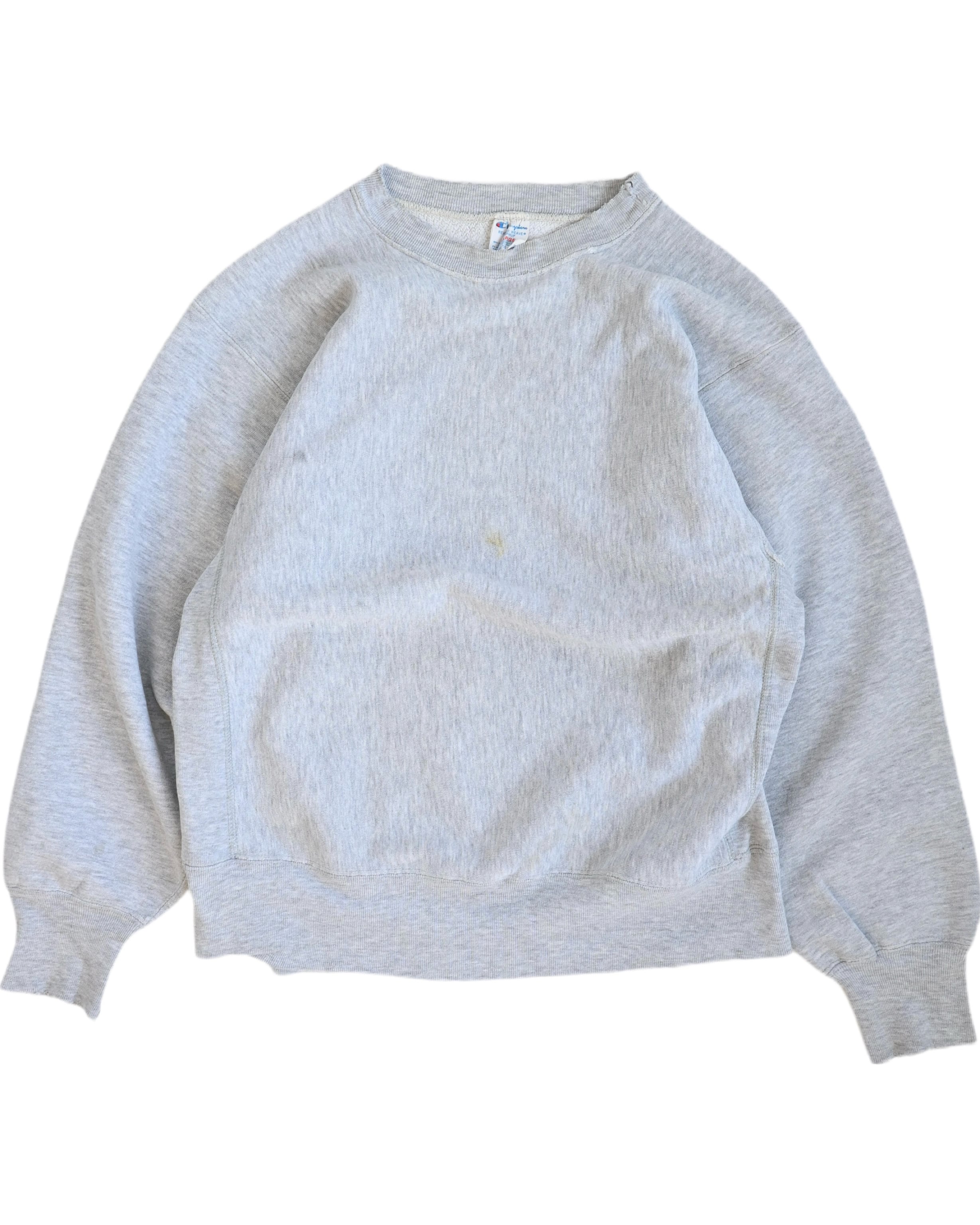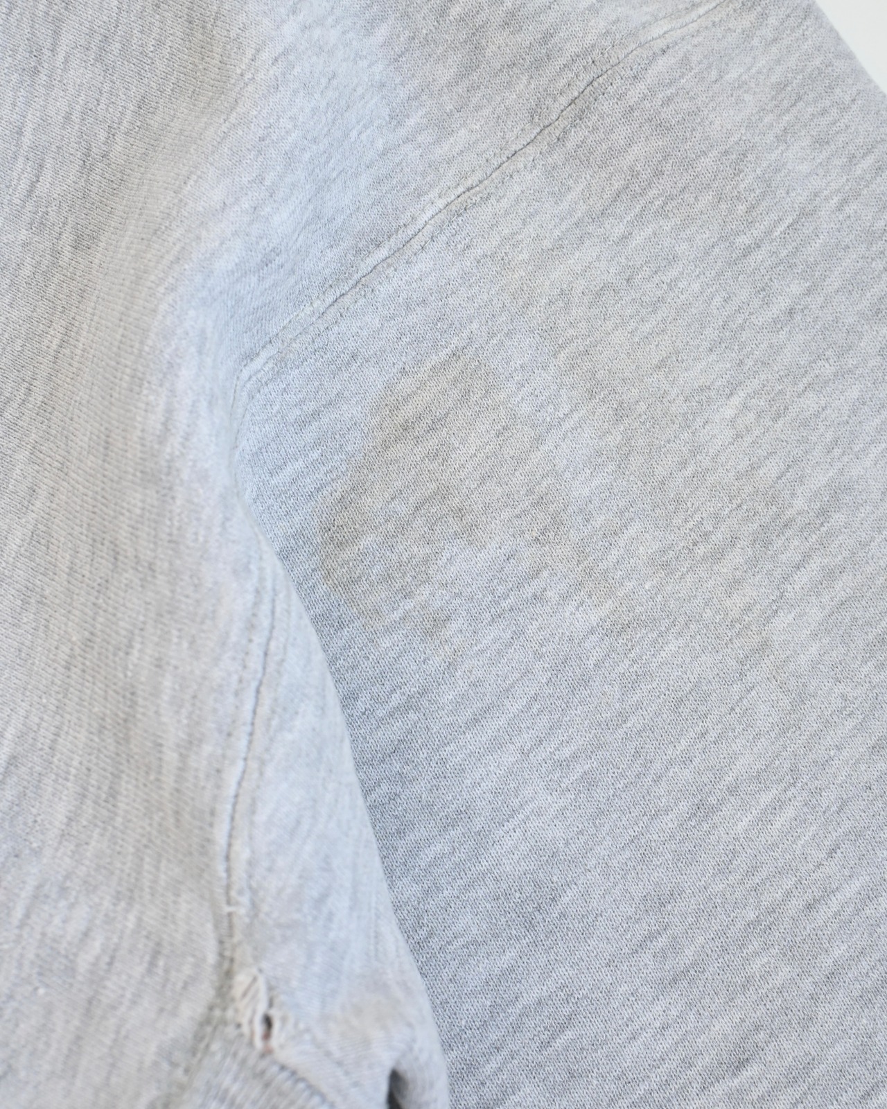 リバースウィーブでは球数が少ない完全目無し。縮んだのか定かではありませんが着丈が短いのでスッキリした印象。全体的に薄いしみ、ダメージあり。